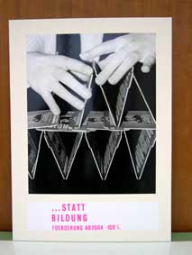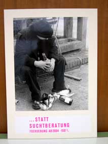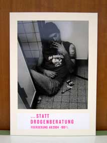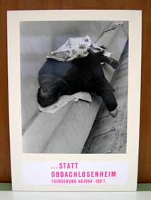 ein projekt von einigen erstsemestlern war es, provozierende fotografien zu machen, die situationen zeigen sollen, was mach dem sozialabbau und dem "ausbeuten der schwachen" passieren könnte.